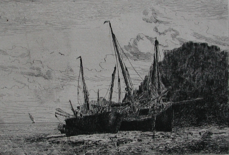 Dessin, gravure de Louis Marie Faudacq : homardiers et lougres goémoniers de Loguivy (collection particulière)Immatriculation