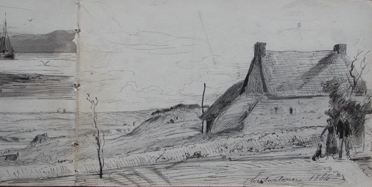 Dessin extrait d'un carnet de Louis-Marie Faudacq : maison près de l'estuaire du Trieux, fin 19ème siècle (collection particulière)Immatriculation