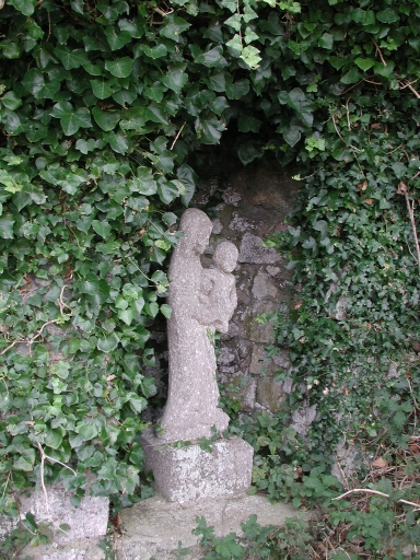 Vue d'une statuette de Vierge à l'enfant dans une sorte d'enclos maçonné, au Nord de l'îleImmatriculation