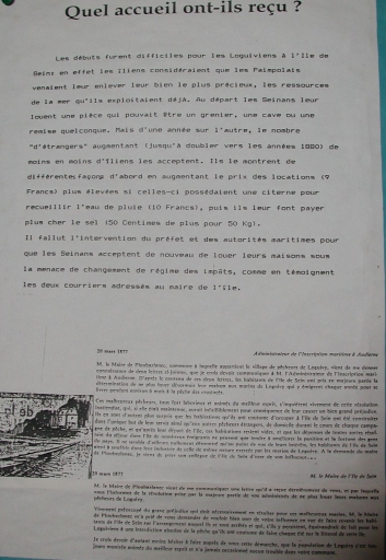 Enquête de la classe de CM1-CM2 de l'école publique de Loguivy-de-la-Mer, 1992 : l'accueil à l'Ile de Sein, lettre du maire le 8 mars 1877 (Musée 'Mémoire d'Islande')Immatriculation