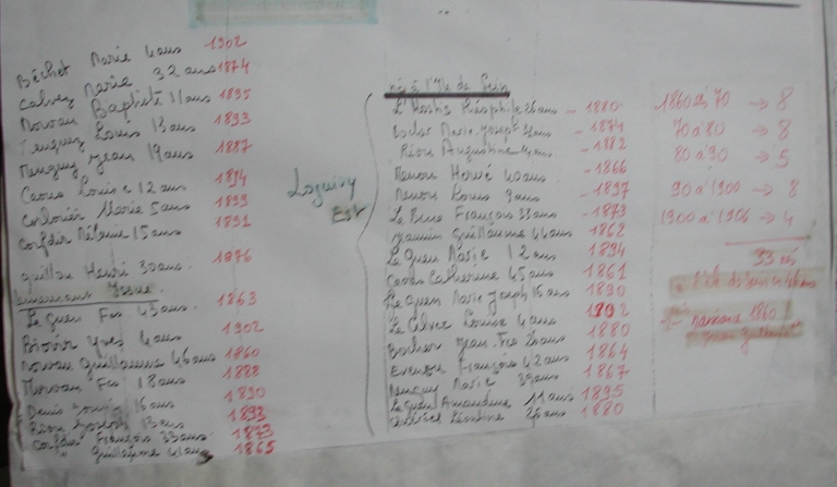 Enquête de la classe de CM1-CM2 de l'école publique de Loguivy-de-la-Mer, 1992 : liste des Loguiviens nés à l'Ile de Sein entre 1880 et 1882 (Musée 'Mémoire d'Islande')Immatriculation