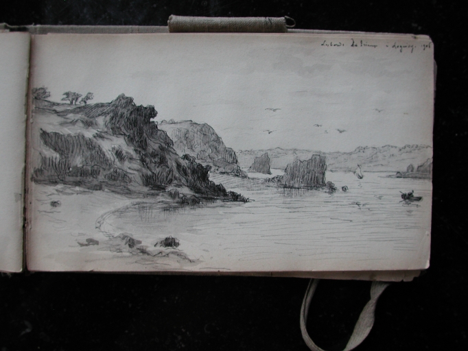 Dessin extrait d'un carnet de Auguste Boulard (fils) : embouchure de l'estuaire du Trieux, 1906 (collection particulière)Immatriculation