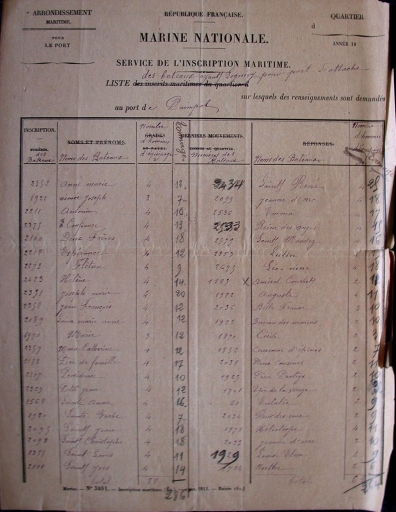 Liste des bateaux de pêche armés à Loguivy en 1909 (AD 22)Immatriculation
