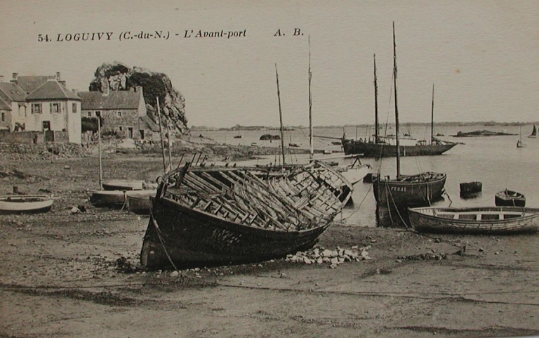 L'épave de la 'Confiance', un des derniers langoustiers de Loguivy, vers 1950 (carte postale, collection particulière)Immatriculation