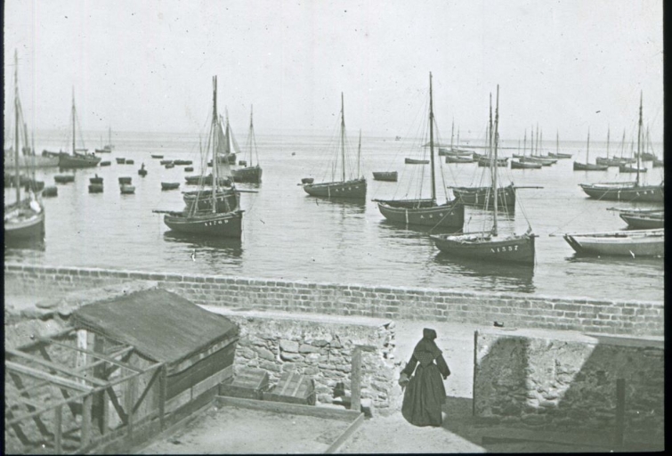 Vue des sloops homardiers à l'Ile de Sein, début 20ème siècle, au 'quai des Iliens' (collection particulière, Institut océanographique de Paris)Immatriculation