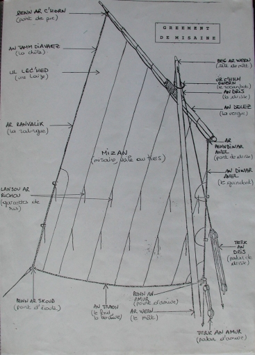 Fiche descriptive d'une misaine, Ronan Merlateau (1989, Ecole de mer du Trégor, collection particulière)Immatriculation