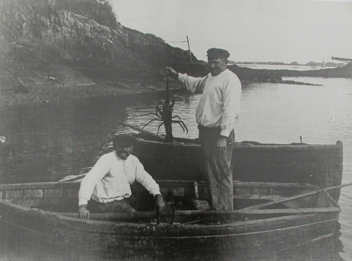 Jean-François et Guillaume Corfdir, à bord de l'annexe du langoustier de 14 m 'l'Eclair', vers 1920 (collection particulière)Immatriculation