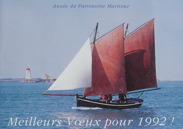 'An Durzhunel' devant le phare de la Croix pour les voeux du Conseil Général des Côtes d'Armor en 1992, année du patrimoine MaritimeImmatriculation
