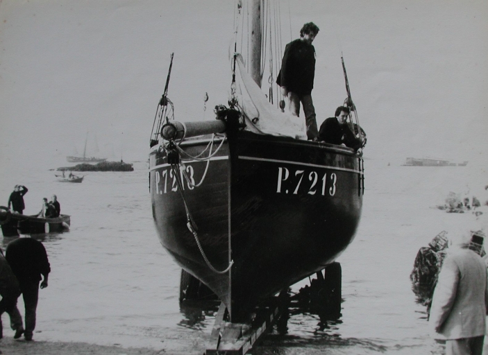'Enez Koalen' sur son chariot juste avant son lancement, avril 1989, (Noël Blin, collection particulière, Ecole de mer du Trégor)Immatriculation