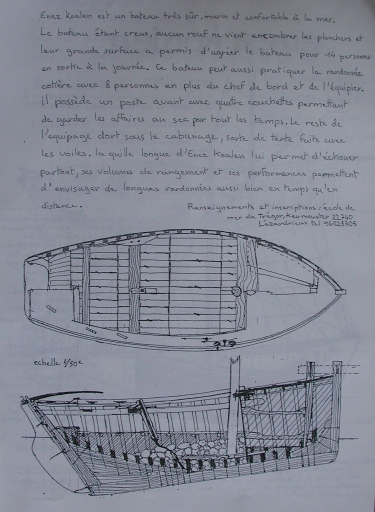 Fiche descriptive de 'Enez Koalen' : aménagement intérieur, d'après Ronan Merlateau, 1989 (collection particulière, Ecole de mer du Trégor)Immatriculation