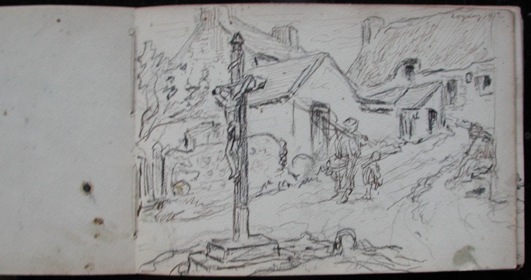 Extrait d'un carnet à dessin de Auguste Boulard (fils) : le calvaire de Loguivy, 1912 (collection particulière)Immatriculation
