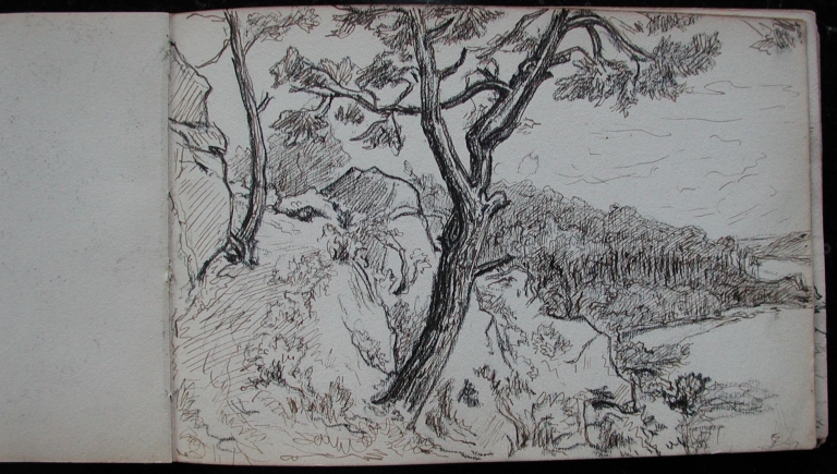 Extrait d'un carnet à dessin de Auguste Boulard (fils) : les bois de l'estuaire du Trieux, début 20ème siècle (collection particulière)Immatriculation