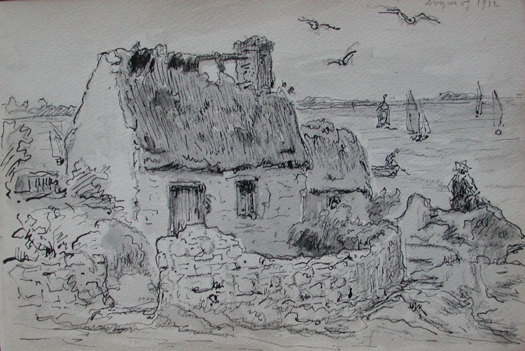 Extrait d'un carnet à dessin de Auguste Boulard (fils) : l'entrée du port de Loguivy, 1912 (collection particulière)Immatriculation