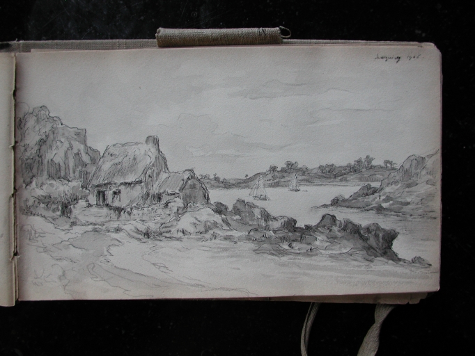 Extrait d'un carnet à dessin de Auguste Boulard (fils) : l'entrée du port de Loguivy, 1906 (collection particulière)Immatriculation