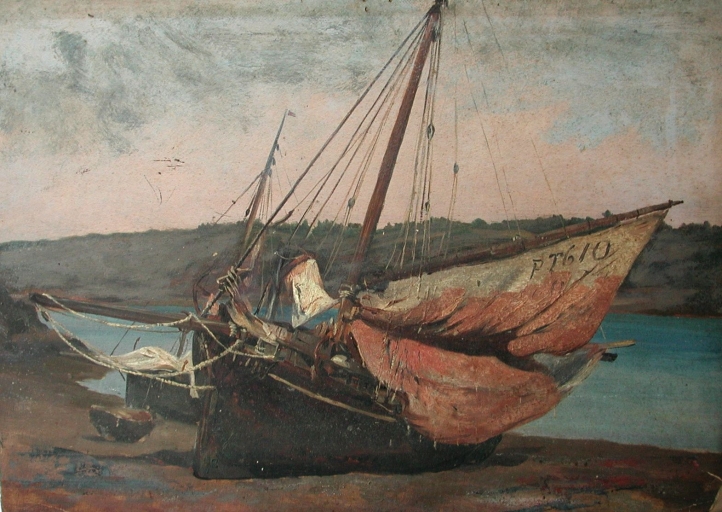 Huile sur carton, sloop à l'échouage sur les rives du Trieux (collection particulière)Immatriculation