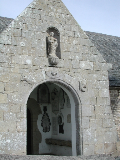 Vue du porche de la chapelle de Perros-Hamon, daté de 1728, avec les 'Mémoires'Immatriculation