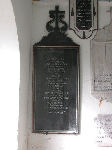 Vue d'un 'Mémoire' en bois restauré, en souvenir de Guilllaume Bré : 162cm x 58 cm (sous le porche)Immatriculation