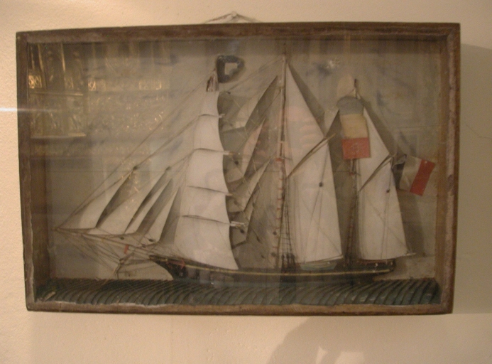 Ex-voto sous vitrine : trois mâts goélette, datée du 20ème siècleImmatriculation