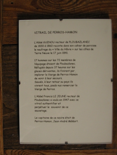 Ex-voto vitrail : 'Ville du Havre', Chapelle de Perros-Hamon (Ploubazlanec),
