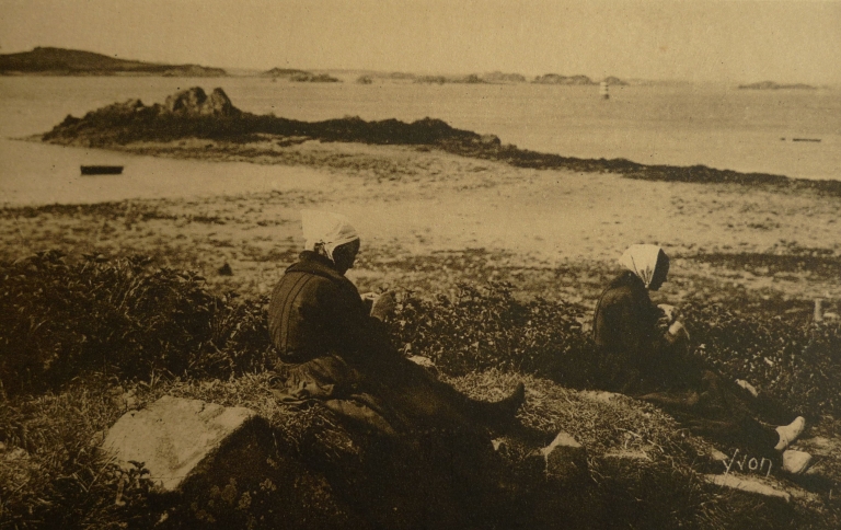 Angèle et Marie-Louise Carmoy, femmes de marins de Loguivy vers 1960 (carte postale, collection particulière)Immatriculation