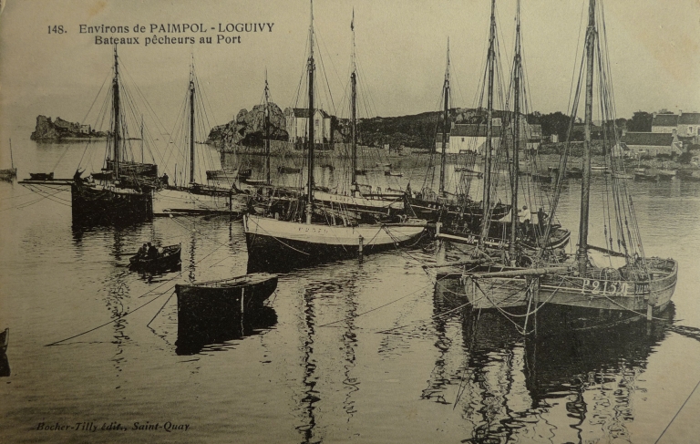 La flottille des grands langoustiers pontés dans le port de Loguivy, à l'apogée de cette pêche, vers 1920 (carte postale, collection particulière)Immatriculation