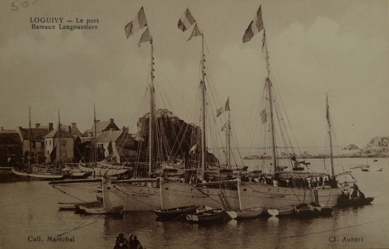 Les langoustiers pontés pavoisés avec leurs coques blanches vers 1930-40 (carte postale, collection particulière)Immatriculation