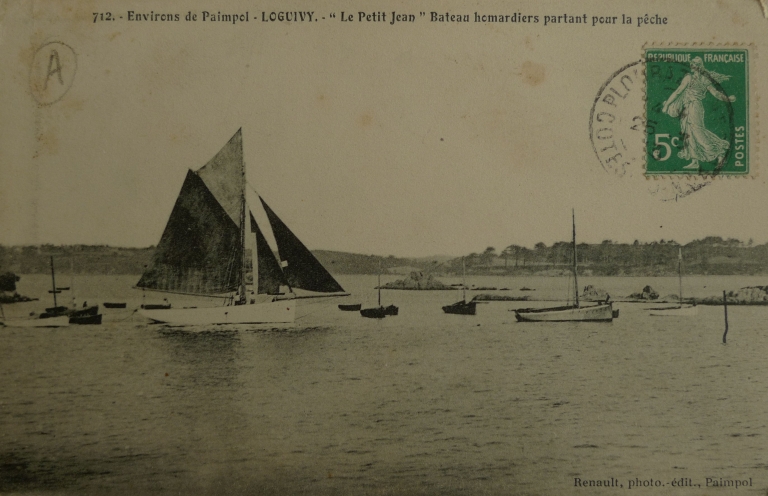 Départ du langoustier 'Petit jean' pour la pêche vers 1925 (carte postale, collection particulière)Immatriculation