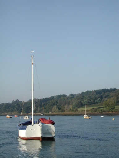 Vue du canot creux misainier 'Bugel' : remarquer le tableau droit et les formes généreusesImmatriculation