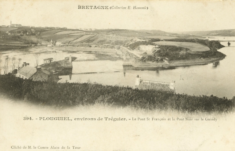 Vue du pont Saint-François et du Pont Noir sur le Guindy qui ont remplacé les bacs, début 20ème siècle (carte postale, AD 22)Immatriculation