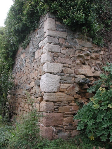 Vue de détail : agencement des pierres d'angle en granite taillé des murs Nord et Est du fourImmatriculation