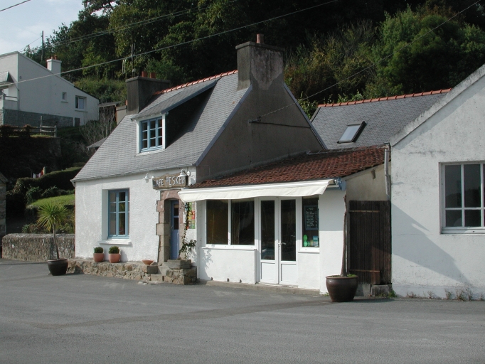 Vue de la maison de l'ancien passeur Loïc Hamon de la Roche-Jaune, aujourd'hui transformée en café-restaurant 'le Pesked'Immatriculation