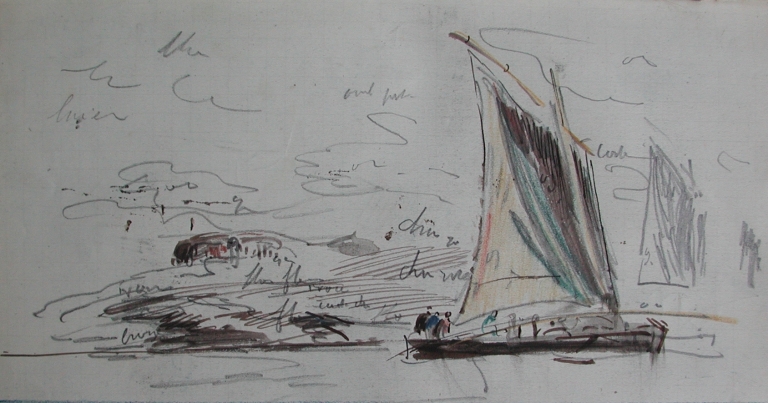 Dessin de Louis Marie Faudacq : vue d'un sablier avec sa grande perche posée, fin 19ème siècle (collection particulière)Immatriculation
