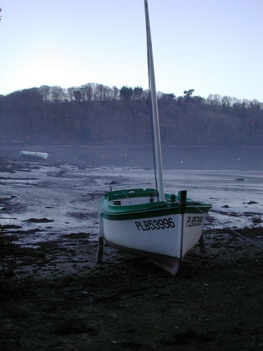 Vue d'un canot de pêche plaisance à l'échouage, en hivernage à Beg MélenImmatriculation
