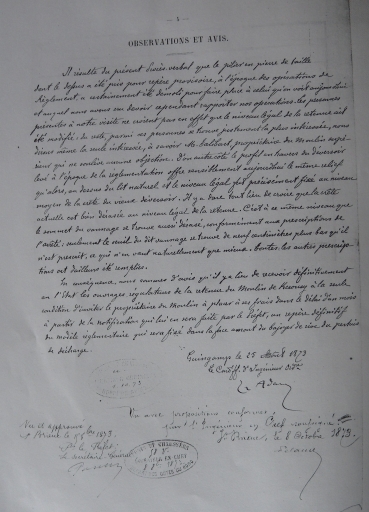 PV de récolement (3ème feuille) des travaux du moulin de Kerousy,1873 : observations et avis (AD 22)Immatriculation