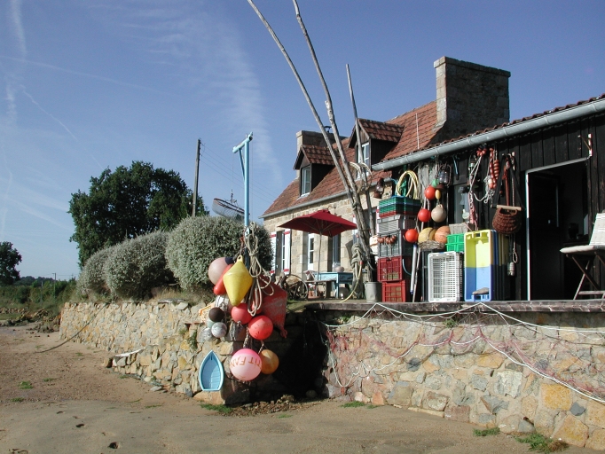 Vue d'une ancienne maison de marin pêcheur ostréiculteur sur les rives du Jaudy, datée du 19ème siècle (Beg Mélen)Immatriculation