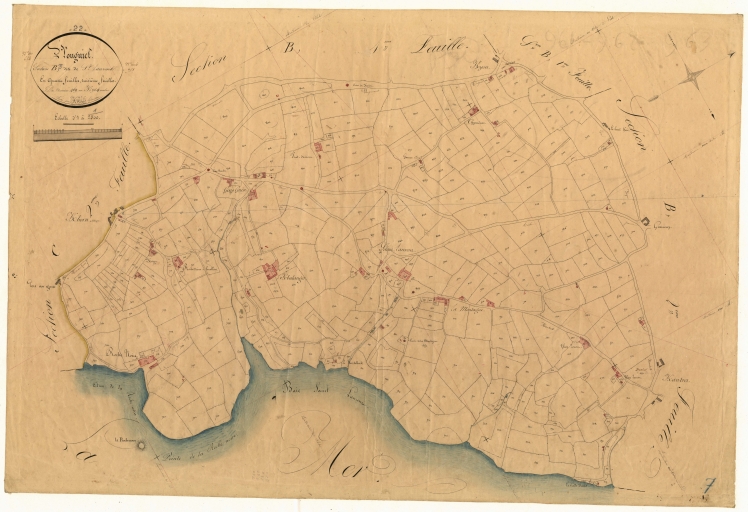 Extrait du cadastre de 1834 : la baie de Saint-Laurent en confluence du Jaudy et du Guindy (AD 22)Immatriculation