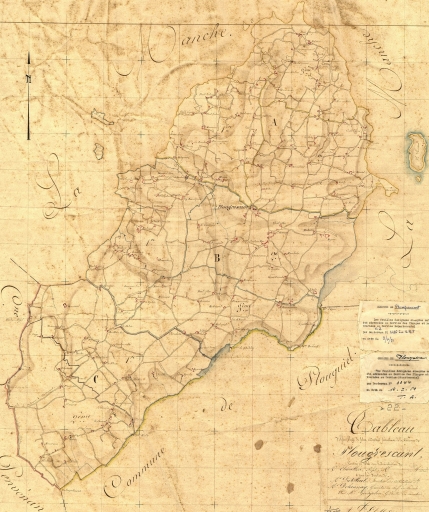 Plougrescant. La commune d'après le tableau d'assemblage des plans cadastraux parcellaires de 1834, par Delaunay, géomètre en chef du cadastre, et Georgelin, géomètre du cadastre (AD 22)Immatriculation