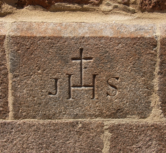 Détail du chevet : initiales JHS en guise de symbole du ChristImmatriculation