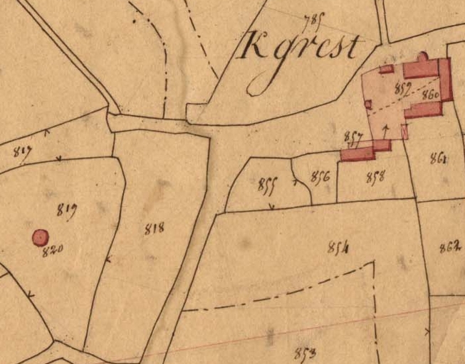 Extrait du cadastre de 1834 : le manoir, la métairie et le colombier de Kergresq (AD 22)Immatriculation