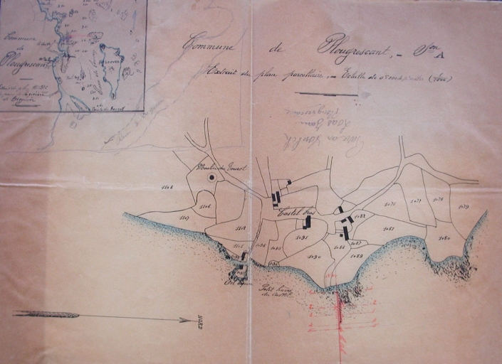 Exrait du parcellaire : plan de situation du site du Castel, 1908 (AD 22)Immatriculation