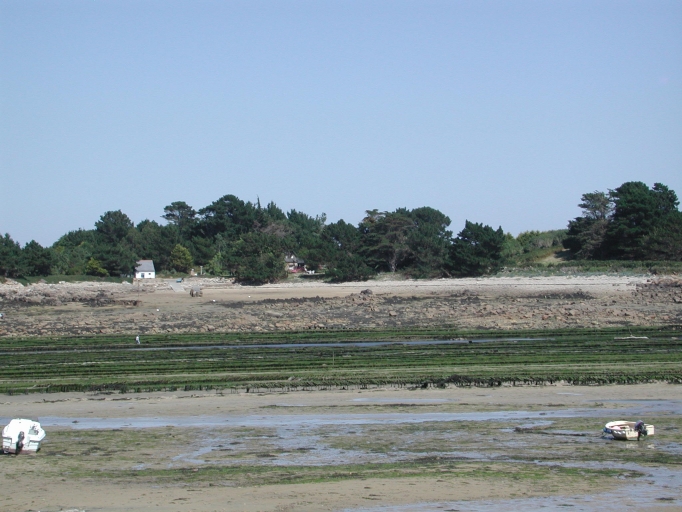 Vue des parcs sur tables dans le chenal entre la côte et l'Île LoavenImmatriculation