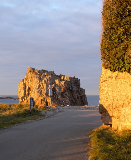 Le rocher dit 'le saint Gonéry' devant Pors Hir, vu du sentier de randonnéeImmatriculation