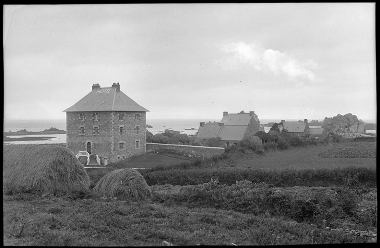 Hôtel de Pors Scaff, début 20ème siècle à côté des champs cultivés (carte postale, AD 22)Immatriculation