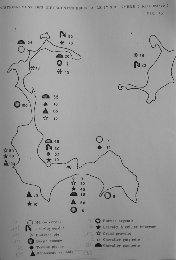 Cartographie : station estivale de différentes espèces des Îles d'Er, repérées le 19 septembre 1974, jour de grande marée (Laboratoire maritime de Dinard, 1974)Immatriculation