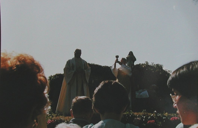 Vue du prêtre officiant devant l'autel extérieur de l'île Loaven, 4e quart 20ème siècle (collection particulière)Immatriculation