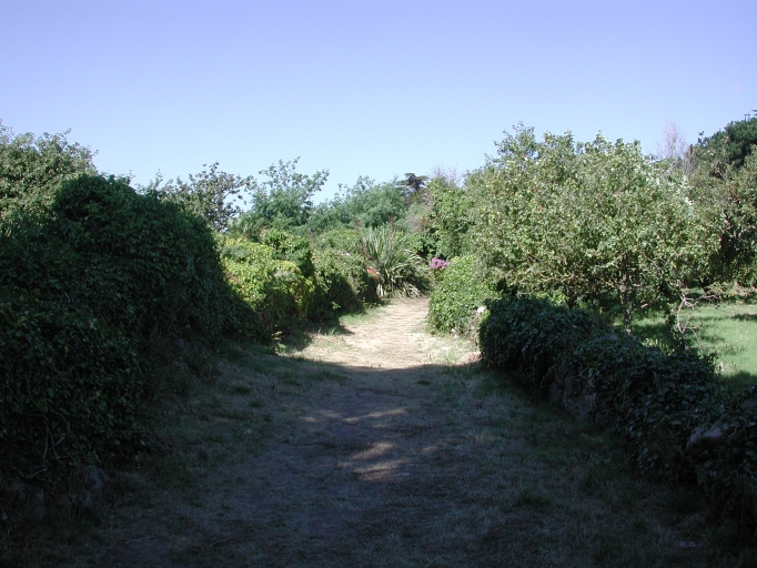 Vue d'un chemin bordé de talus à l'intérieur de l'Île LoavenImmatriculation