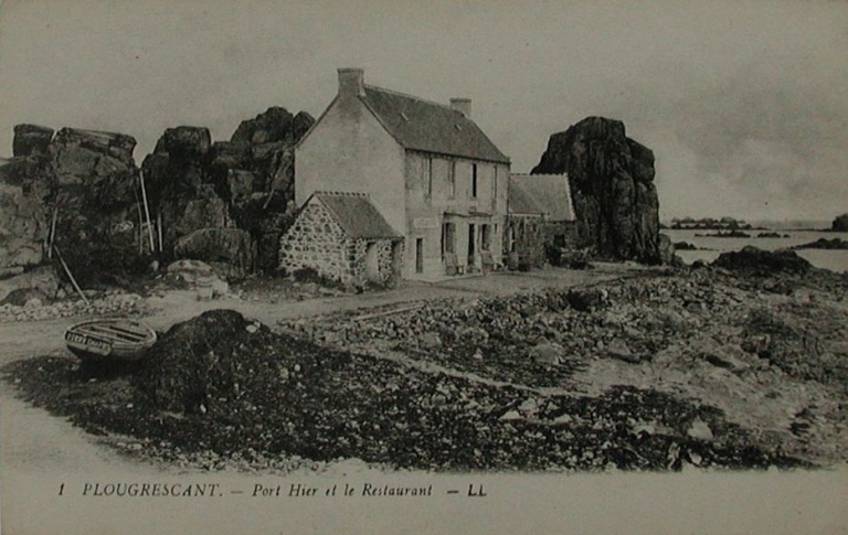 Bâti littoral sur Pors Hir, entre les rochers : restaurant Le Coadou, début 20ème siècle (carte postale, collection particulière)Immatriculation
