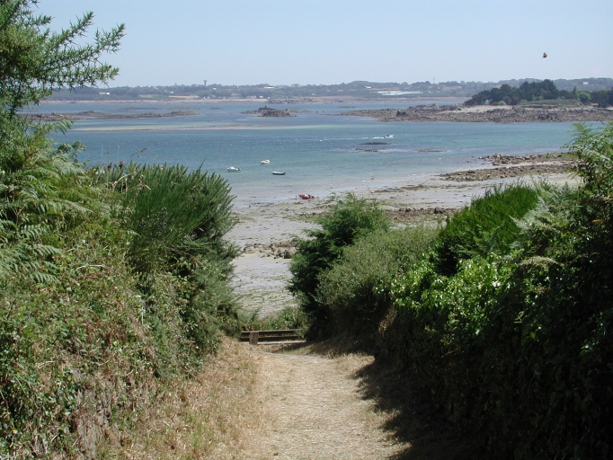 Vue du sentier de Run Foën qui mène à la grève entre Pors Hir et le Castel : remarquer le talus empierréImmatriculation