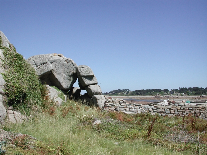 Vue du mur latéral Nord construit en galets et en moellonsImmatriculation