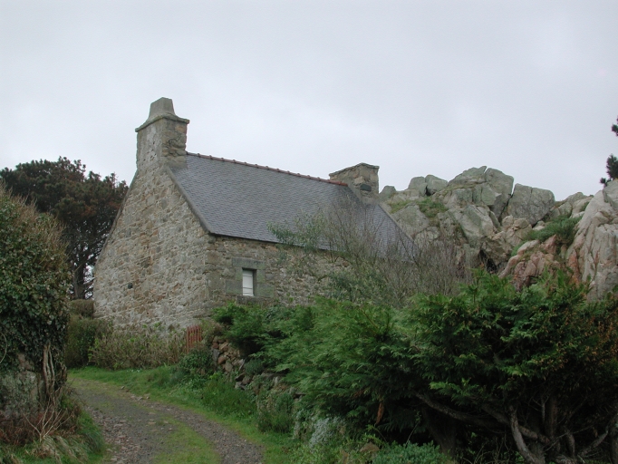 Plougrescant. Ancienne maison de Per Derrien, bâtie contre le rocher, Grav Guelen, Pors HirImmatriculation